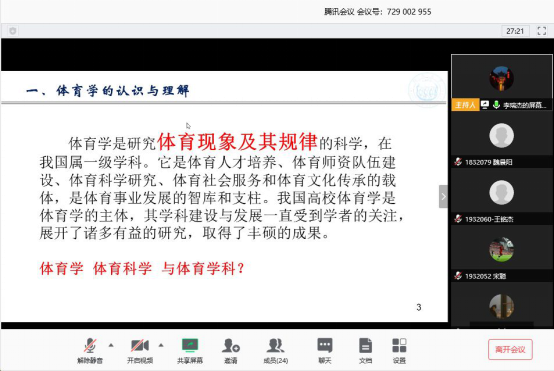 李瑞杰老师通过腾讯视频会议平台讲授《体育学研究前沿与发展趋势》课程