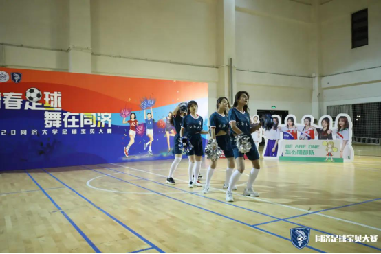 第一支登场的队伍是cherry girls,她们的口号是cherry girl cheer you up。虽然是第一支上场的队伍,但她们丝毫不怯场,四人配合默契,耀眼舞动的队员们以其特有的活力与魅力展示了足球宝贝的朝气蓬勃,也淋漓尽致的诠释了同济学子的风采。
